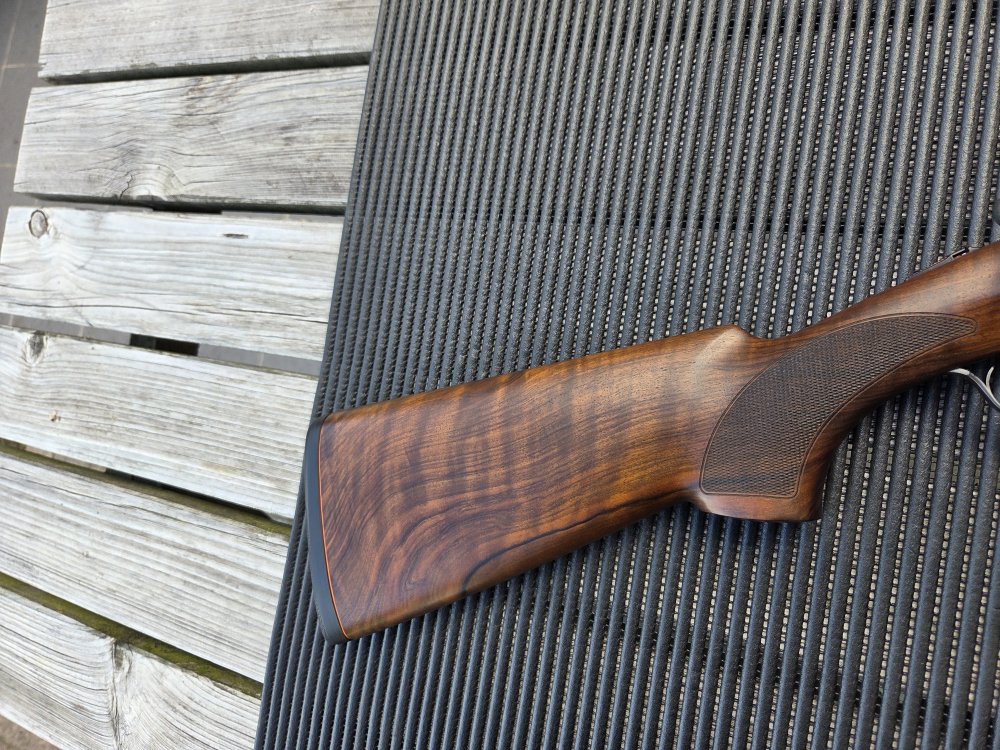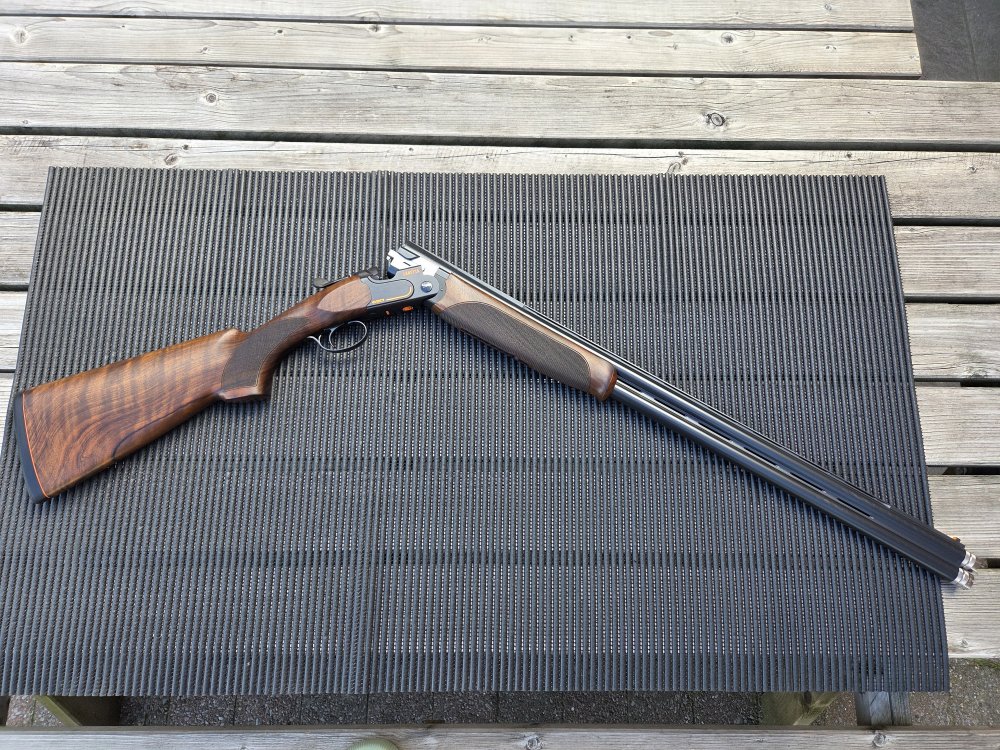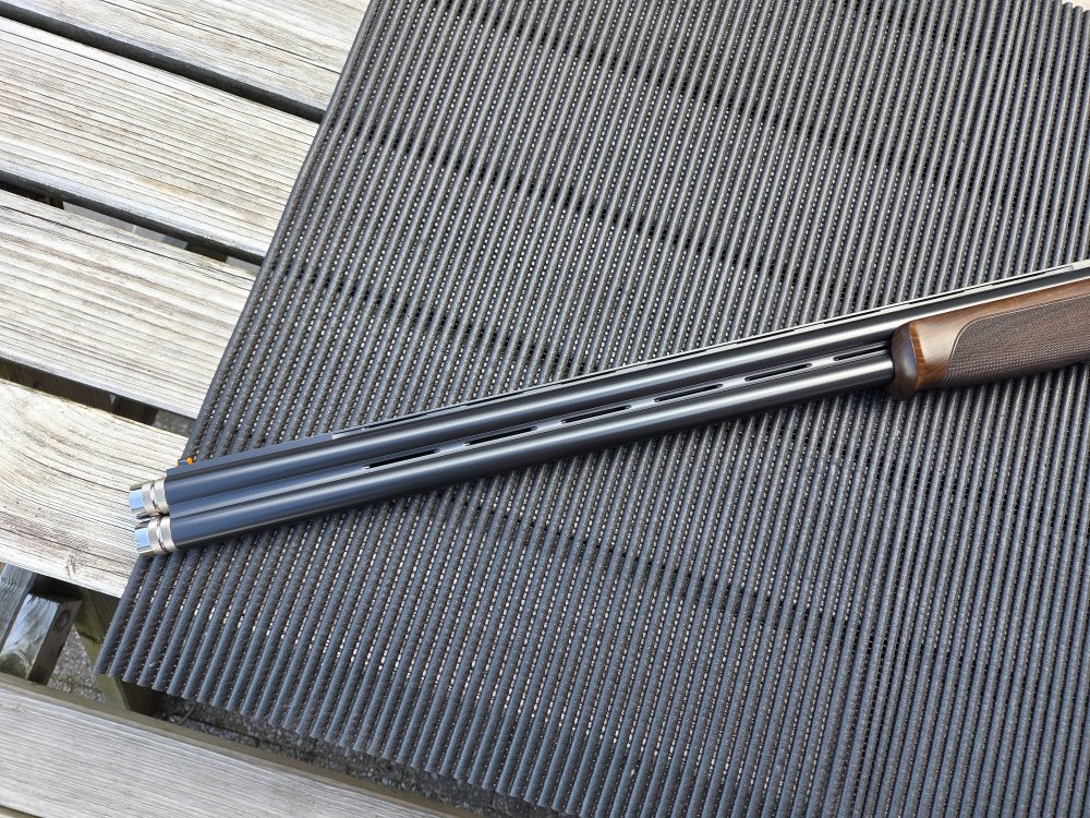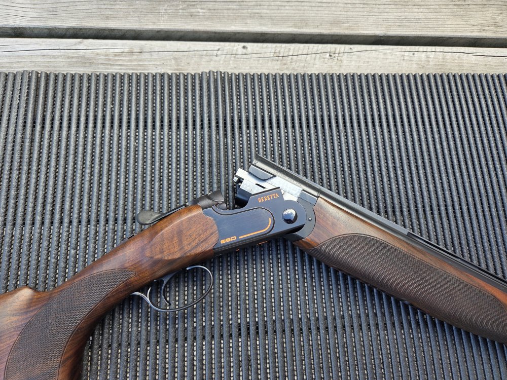 Een Beretta 690 die zich in een uitstekende staat bevindt. Bijna nieuwstaat kan ik wel zeggen want ik moest goed zoeken om maar één minuscuul licht gebruikersspoor op de Beretta te vinden en dat is bij de handpalm greep aan de kant van de trekker (zie foto).