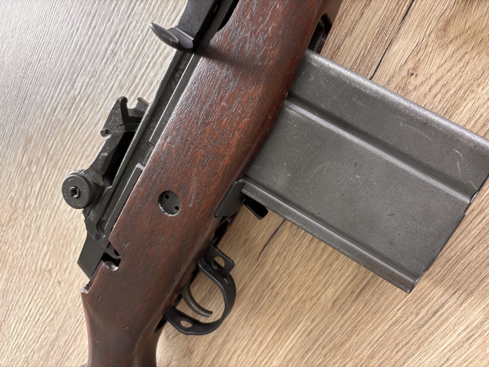 He shoot in semi auto but can shoot in full auto (parts for that are remounted but sold with the rifle).