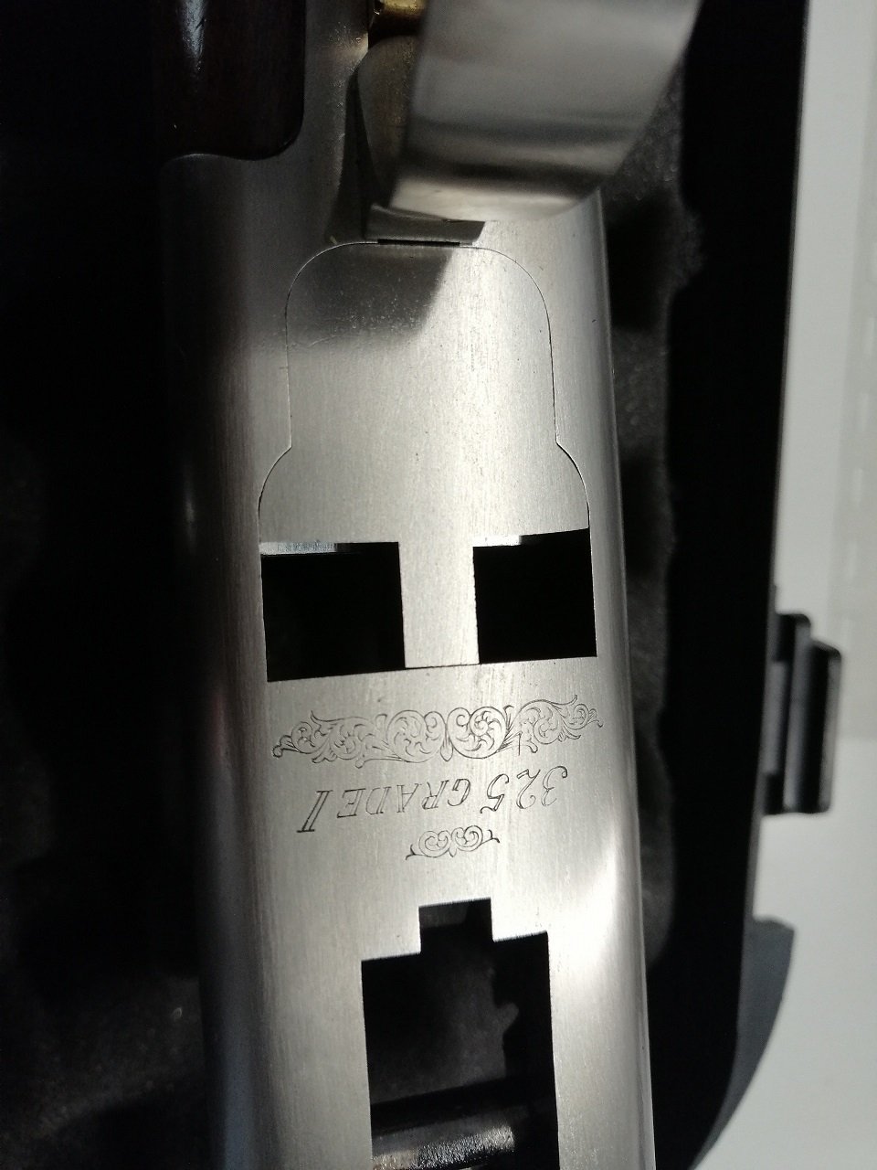mooi hagelgeweer merk browning type b325 grade 2, voorzien van vaste chokes, en midden op de loop een extra korrel, model sporting