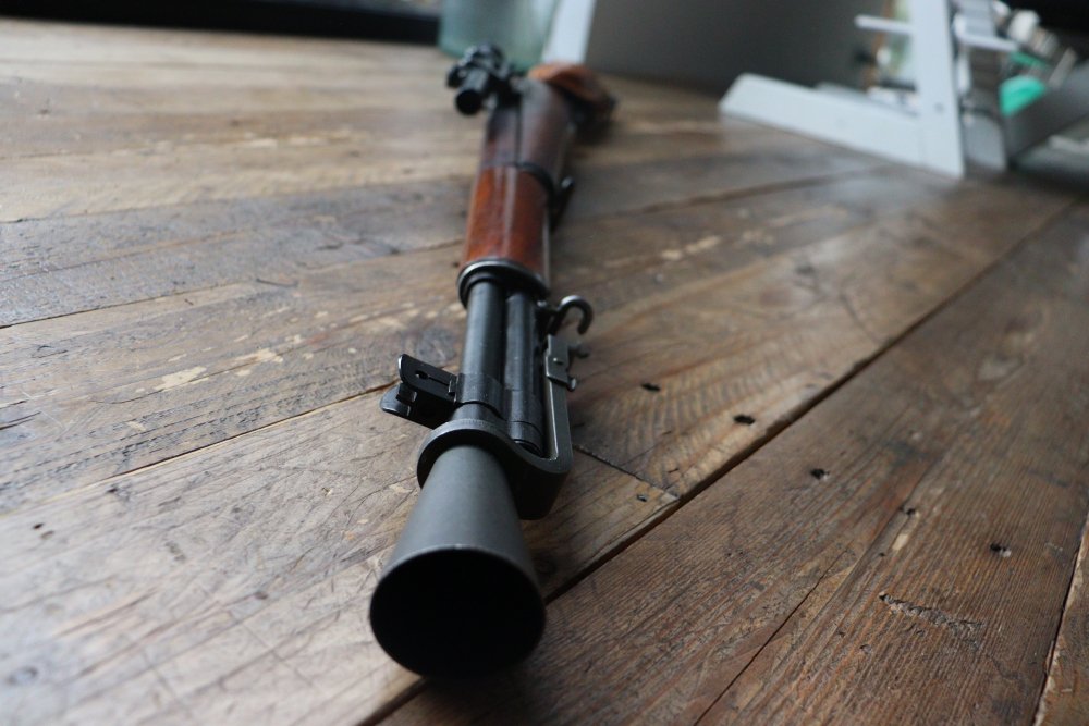 Zeldzame Garand M1C in zeer goede staat en compleet met flashider, cheekpad en kijker met de vaak ontbrekende oogdop.