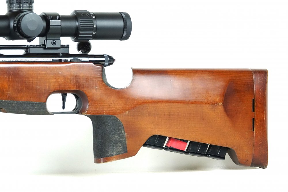 Anschutz 1827, betreft de Biathlon versie met 5 magazijnen in de kolf. Wapen ziet er netjes uit en is geimporteerd uit Denemarken. De biathlon versies zijn amper te vinden is op de Nederlandse markt. Deze Anschutz heeft het grendelhuis van de Match 54 en de 5018 trekker groep met extreem korte schotontwikkelingstijd.