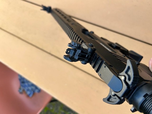 Inklapbare iron sights.