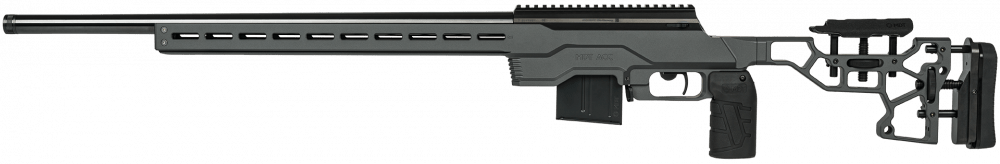 Een actie gemaakt van hoogwaardig staal. Strakke gepolijste afwerking. De grendel is in klassiek zwart, ultrahard gecoat met DLC. Verankerd in het MDT-chassis van aluminium voor uitstekende stabiliteit. Geïntegreerde Picatinny-rail met 20 MOA. Direct gereed voor de lange afstanden.