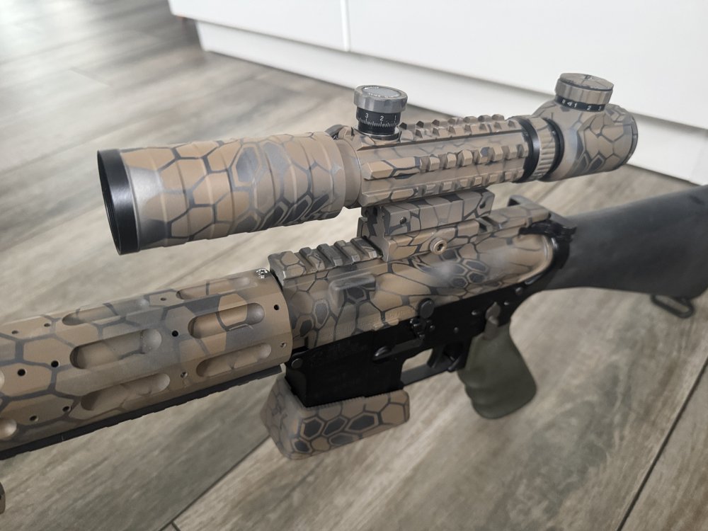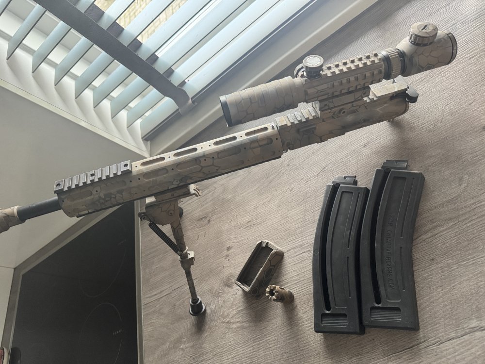 Wapen komt met een CHIAPPA .22 wissel set met 2 .22 magazijnen wat met Cerakote in camo stijl is gespoten (ben Cerakote gecertificeerd).
