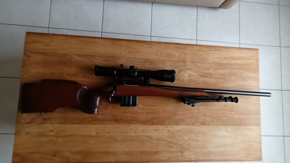 Heel mooie houten uitvoering va de cz557 in cal 308wm met marksman kijker en bipod.