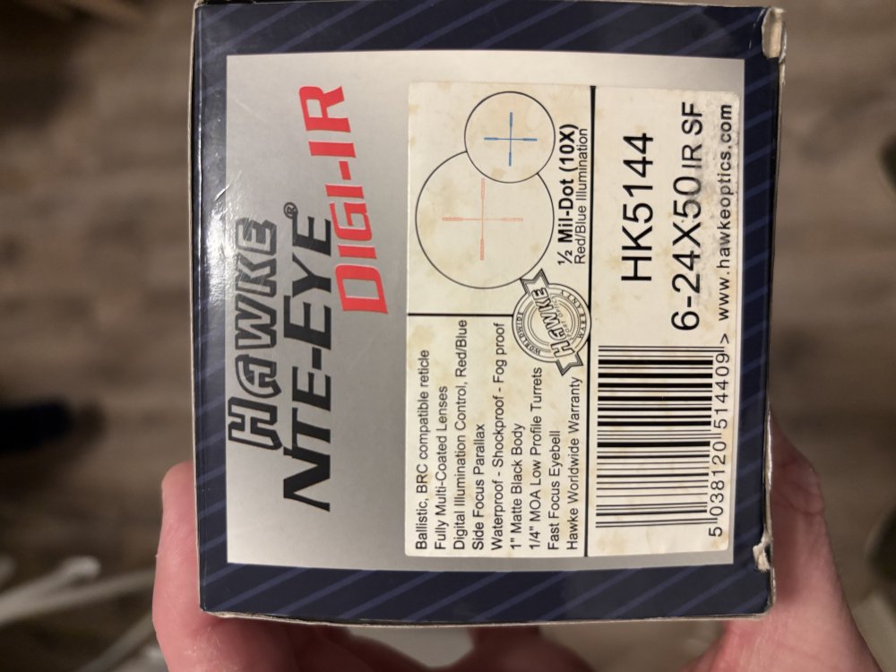 Op het geweer zit een Hawke Nite Eye 6x24x50 met verlicht dradenkruis.