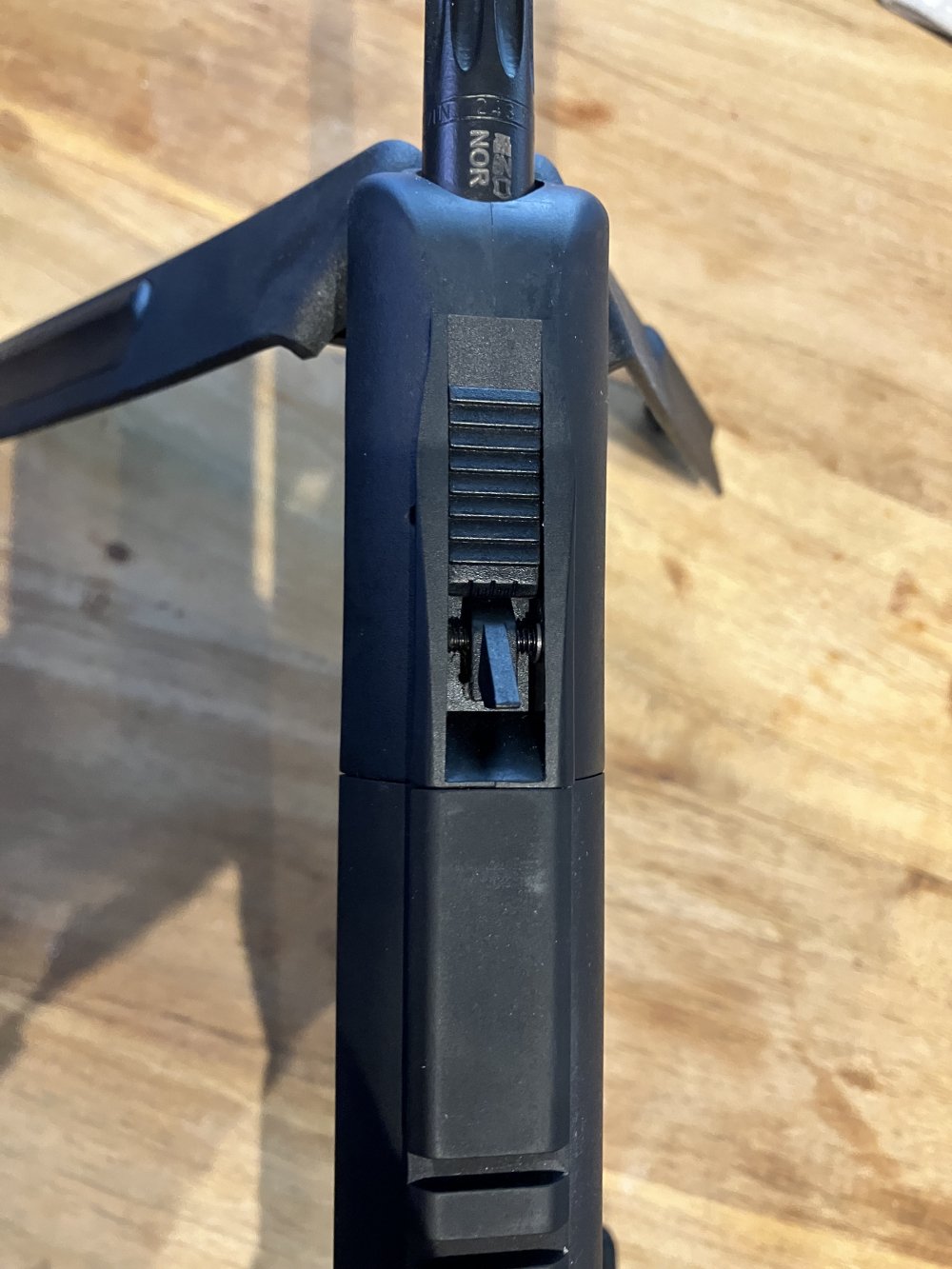 3 positie veiligheidssysteem van Steyr waarbij de grendel plat op de kolf komt om veilig het wapen te kunnen dragen.