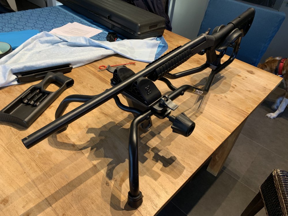 Het is een envoudig en robuust ontwerp met een grote korrel, en een synthetische kolf. De originele kolf is uitgerust met houders voor de patronen.