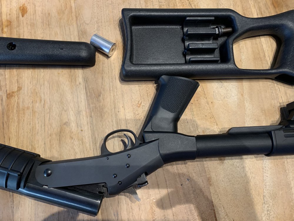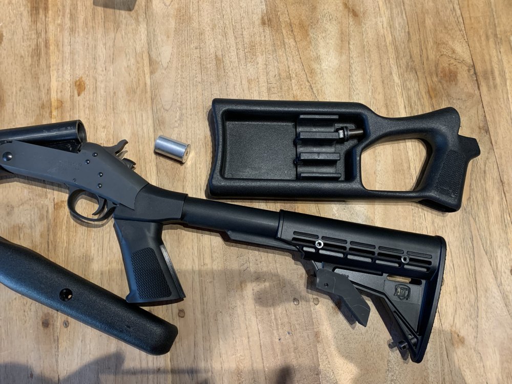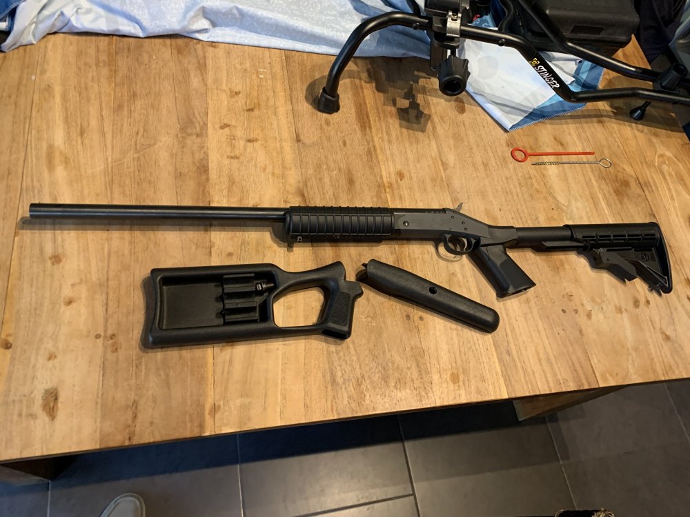 Het wapen wordt in de VS verkocht in .410 gauge en .20 gauge, maar deze gebruikt dus cal 12 patronen.
