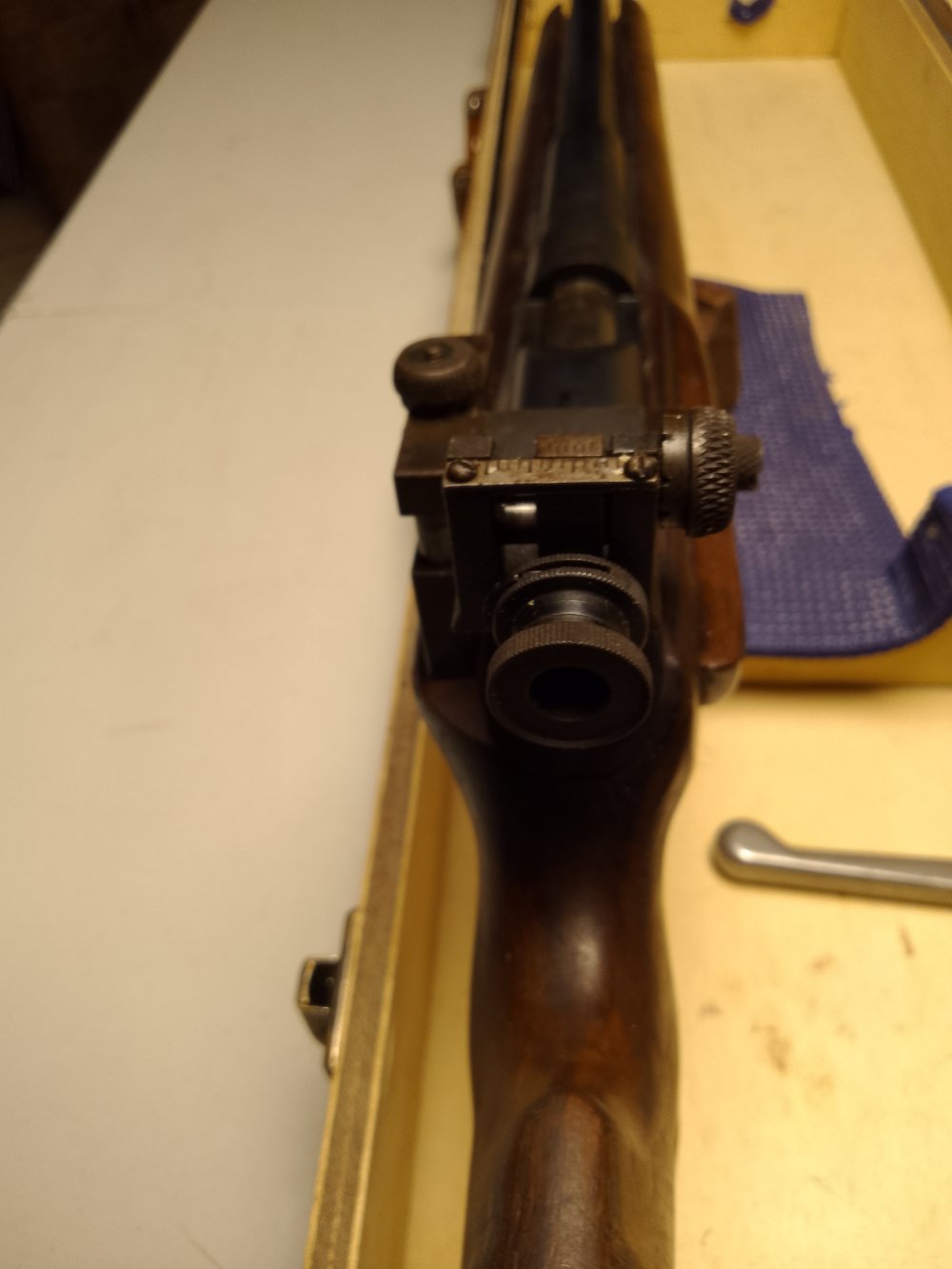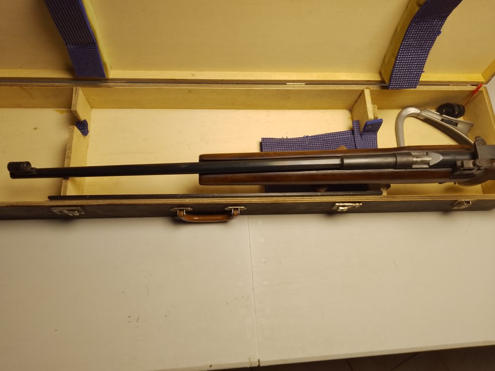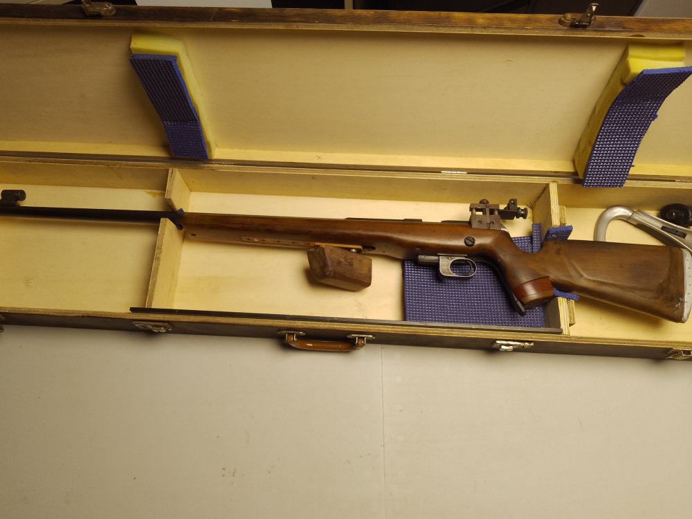 Uniek wedstrijd wapen .22lr. Dit wapen heeft geen merk maar is door een wapenmaker thuis gemaakt. Het staat wel op model 9 dus volledig legaal. Uitstekend wapen om wedstrijden mee te schieten met onderlever grendel en verstelbare diopter weinig gebruiksporen.schouderhaak is er jammergenoeg niet meer bij.