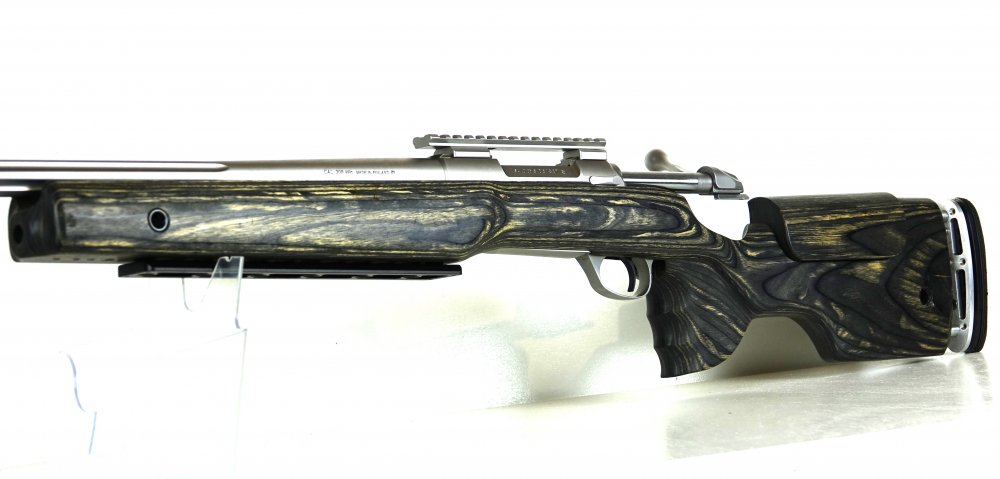Sako 85 varmint stainless in 308win. De nauwkeurigheid is super, met dit geweer worden met de juiste munitie groepjes van 10mm geschoten. De SAKO heeft een 60cm gekandaleerde loop van 22mm. Later is er door een professionele wapenmaker schoefdraad opgezet M18x1.