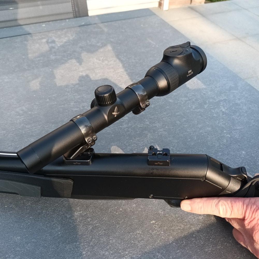 Zwenkmontage AEW en inclusief Swarovski Z6i 1-6x24 Verlicht battue kruis met cirkel.