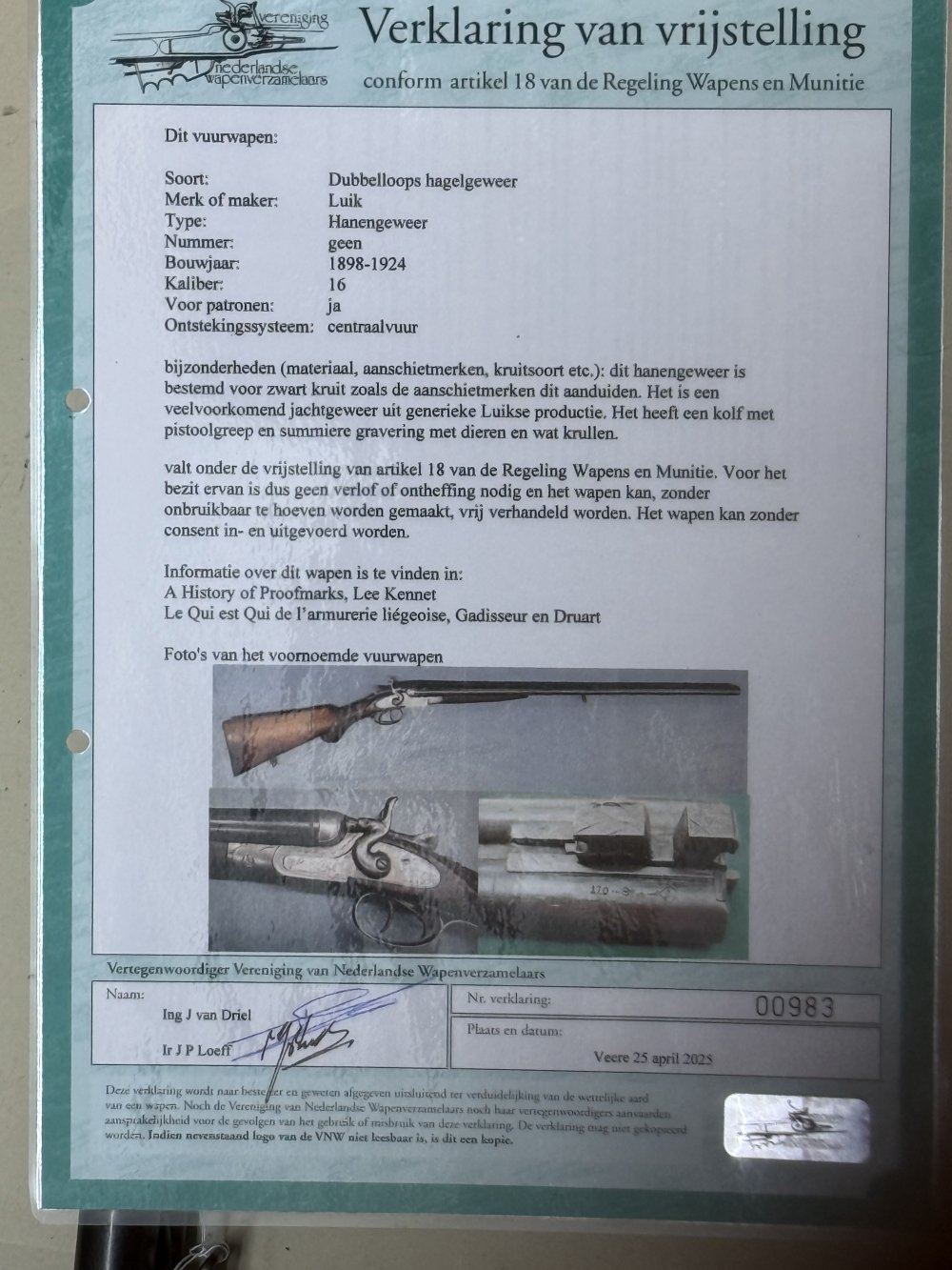 Zwartkruit Dubbelloops hagelgeweer Cal16