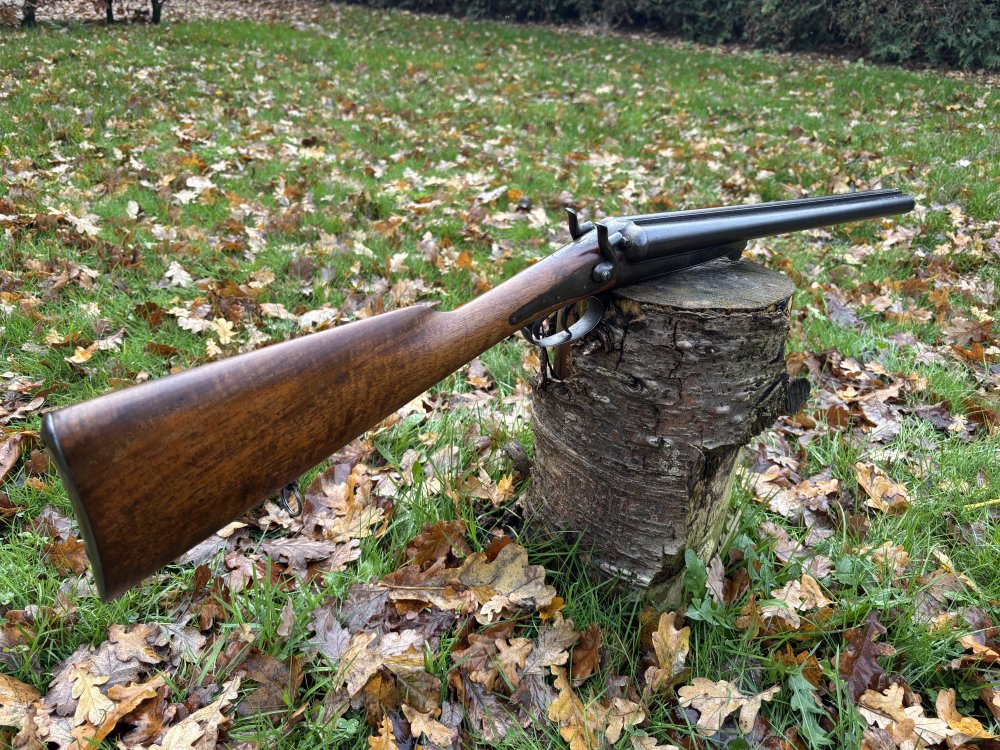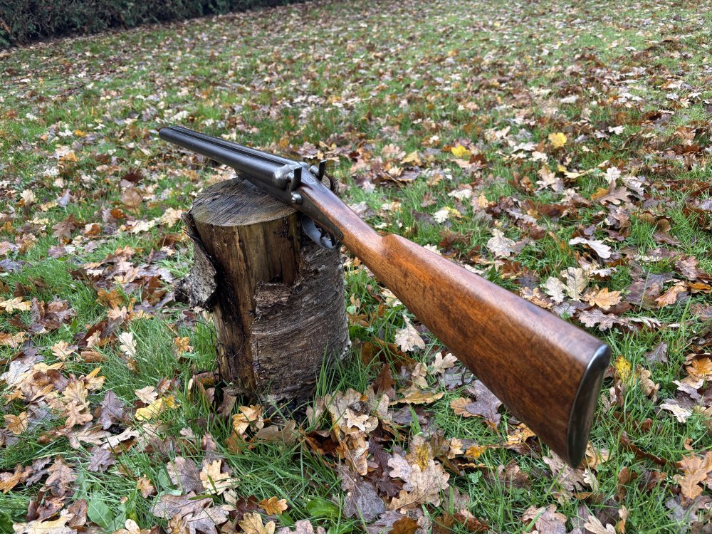 Hierbij aangeboden een husqvarna kaliber 12 jachtgeweer/hagelgeweer in de ‘coach’ uitvoering dus korte lopen. De lopen zijn van dik zweeds staal en dus erg goed van kwaliteit, de hamers spannen goed strak op haken goed in en slaan hard af. Sluit netjes strak zonder speling