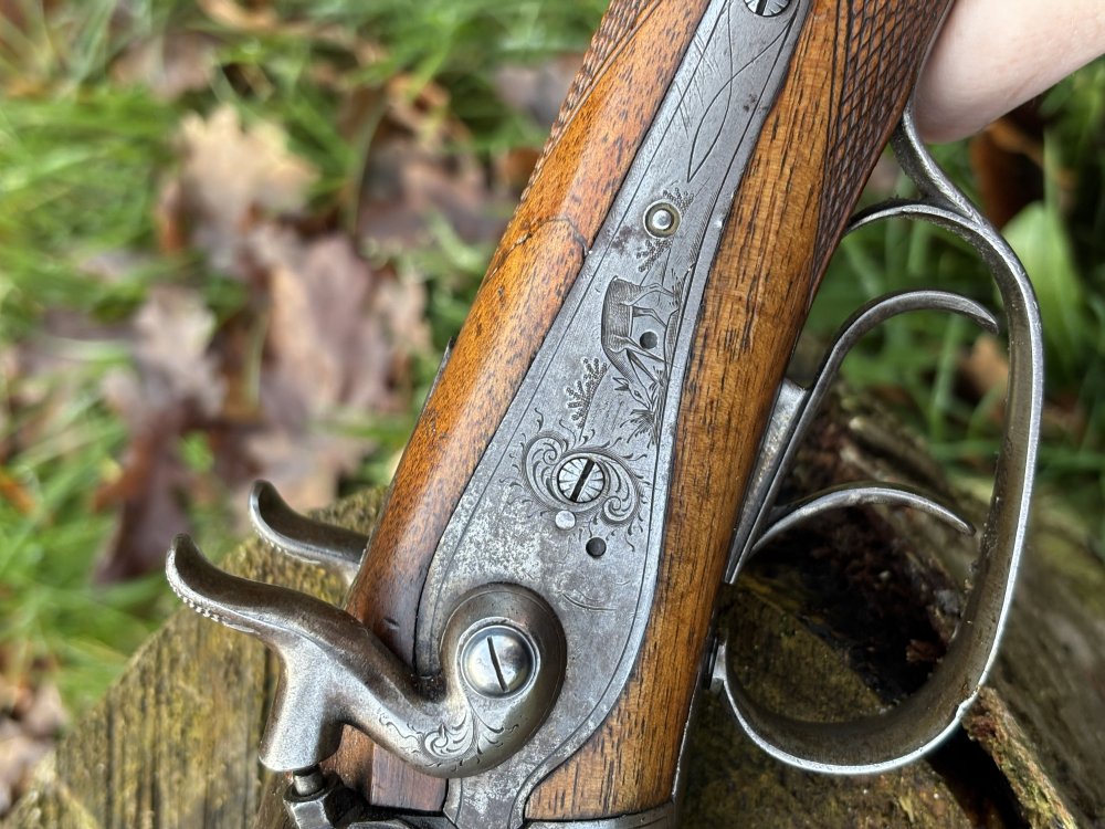 Model 15 met rijke gravering en jachtgravures op de slotplaten