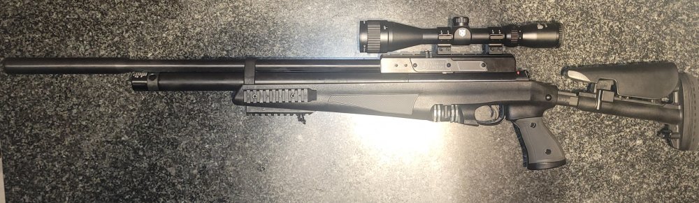 Komt met enkele doosjes munitie en voetpomp om de tank te vullen.