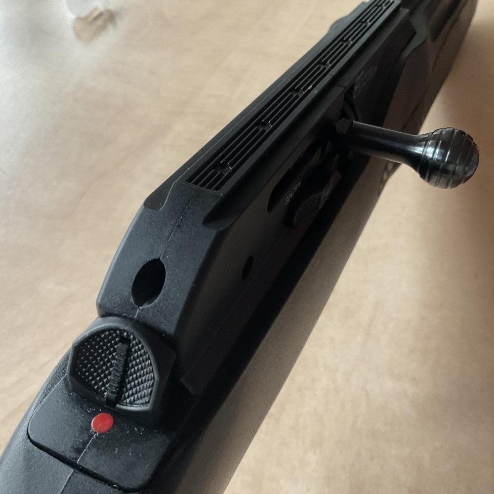 De buks heeft een universele kunststof kolf en schiet op basis van 88-grams CO2-capsules.