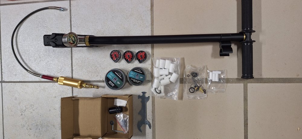 Hij is compleet met doos, handleiding, pomp, reserve dichtingen, 3 magazijnen.