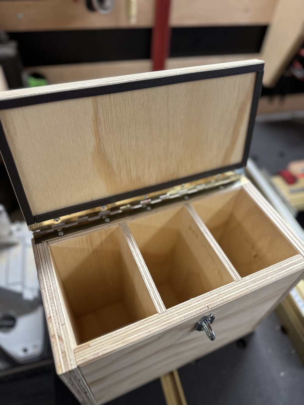 Gemaakt van 18mm Radiata multiplex. Afsluitstrip en kistsluiting of kistoverval.