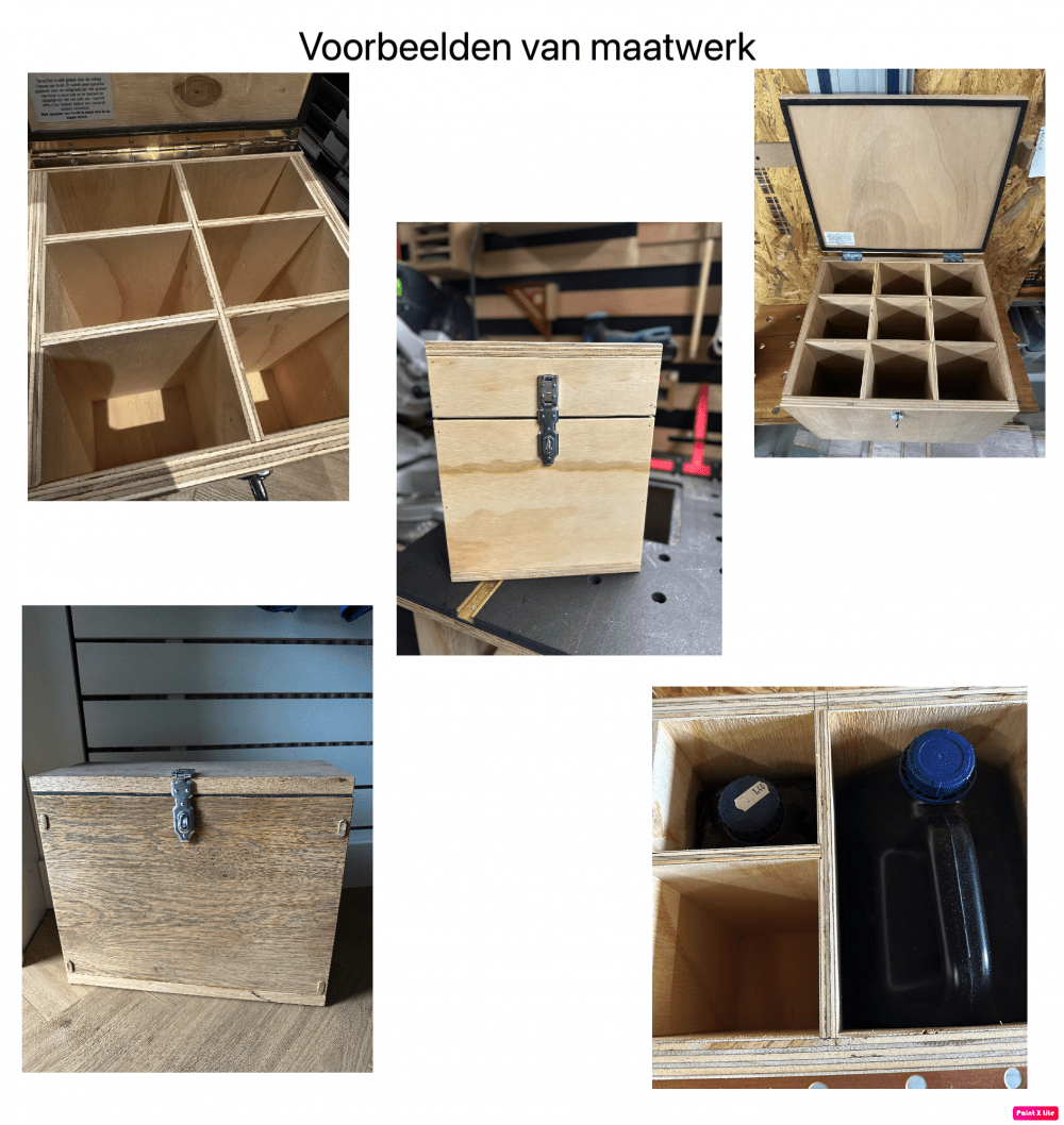 Het maken van een kistje met andere afmetingen is ook mogelijk. Zie hiervoor de laatste foto. Neem contact met me op voor de mogelijkheden.