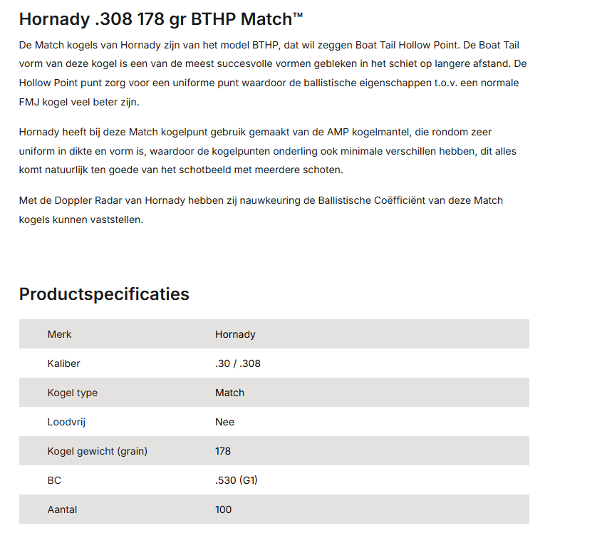 Kogelkoppen Hornady .30 ELD Match 178 grain.