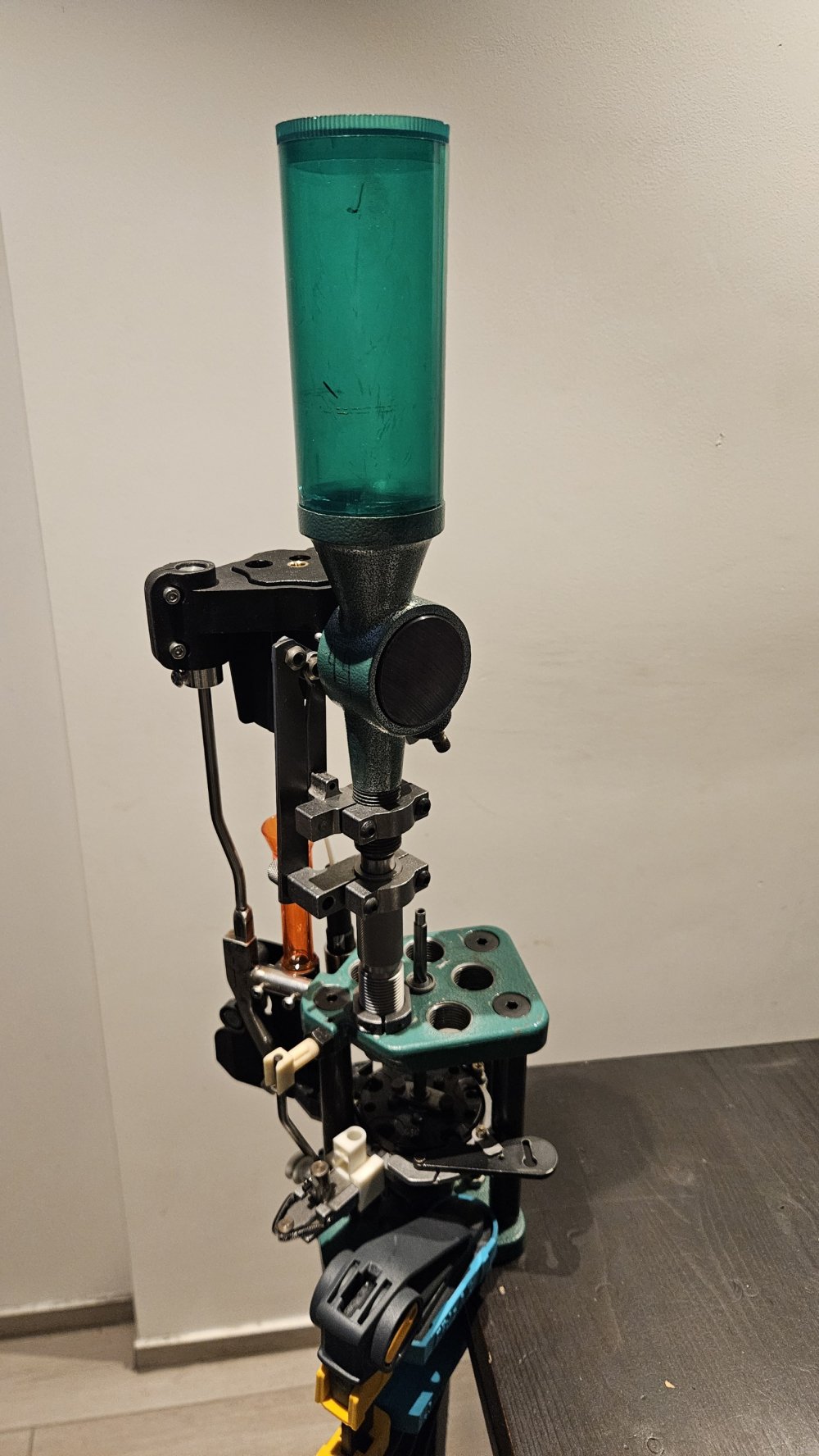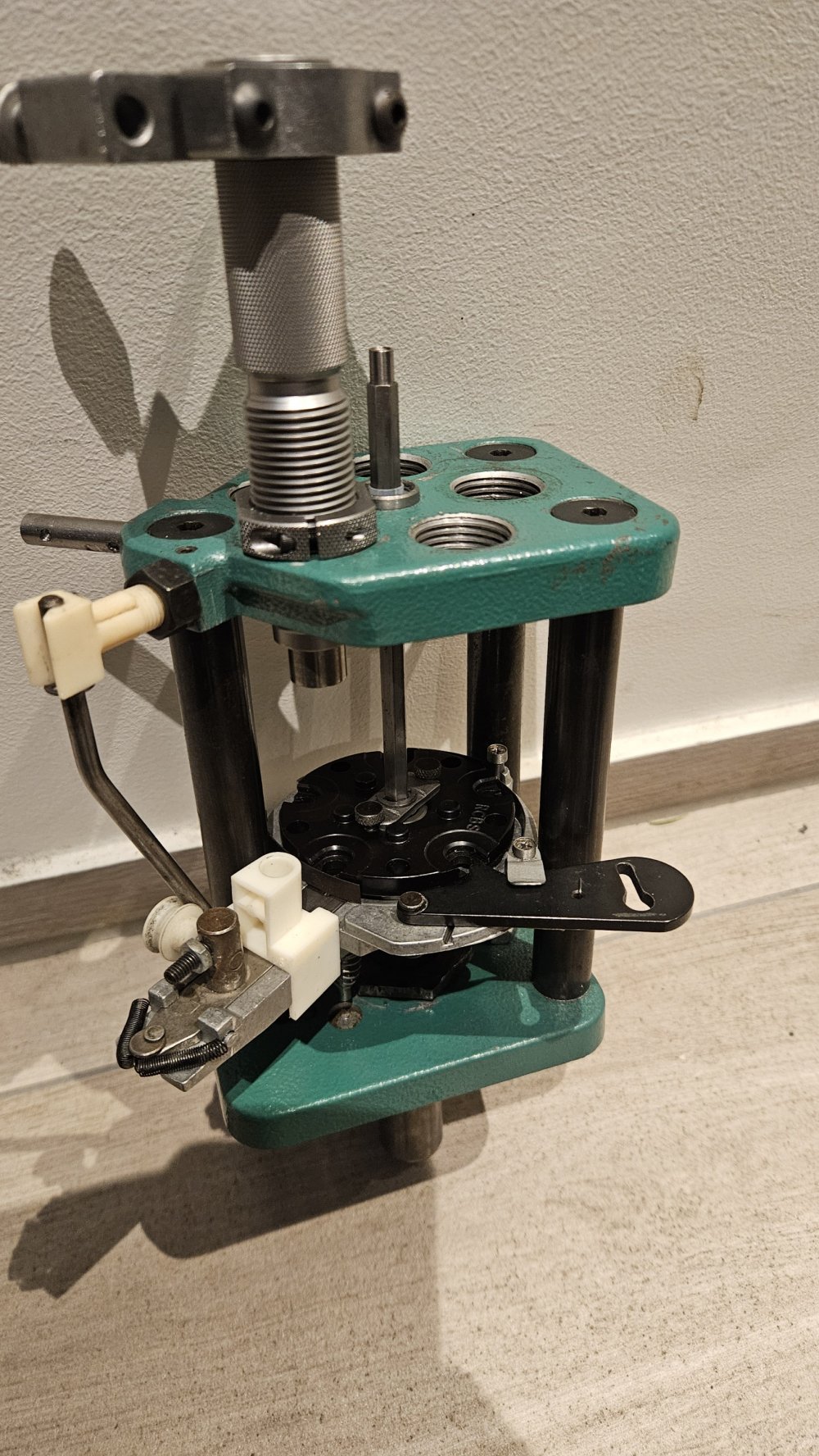 Piggybag progressieve herlaadpers 5 stations. Over i.v.m. aanschaf andere pers. Inclusief om de hulzenaanvoer te automatiseren en veel reserve materialen. Ook in originele staat te gebruiken, zie foto's. Inclusief platen 03, 06, 10,16 en 18 voor .357, .356, .38. .380 45. 44, en 223.