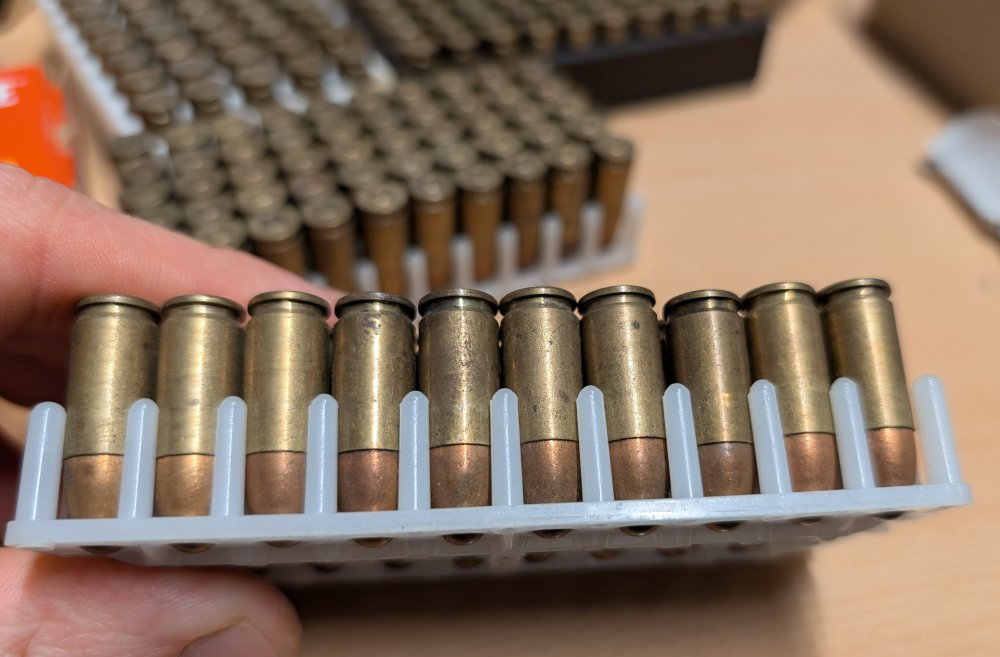 De patronen zitten niet in originele doosjes, maar zien er wel bijzonder goed uit voor de leeftijd. Ik heb ze jaren geleden getest met mijn vorige pistool, schoot goed (en fel) met een lekkere geur. Sindsdien liggen ze in mijn kluis. Aangezien ik binnenkort stop met pistool schieten mogen ze weg.