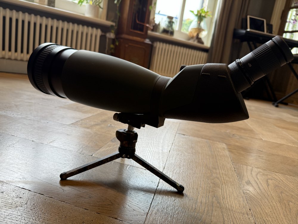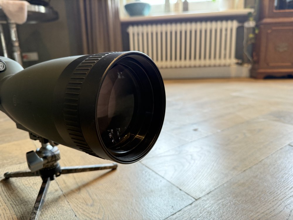 Wegens overbodig te koop aangeboden. In 2024 aangekocht bij Kamera Express maar nooit in gebruik genomen. Prima baankijker met een flink zoom bereik van 75x en een grote lens van 100mm waardoor er veel licht binnen komt, prettig op wat donkerdere banen. Er zit een degelijke beschermhoes bij. Excl. statief.