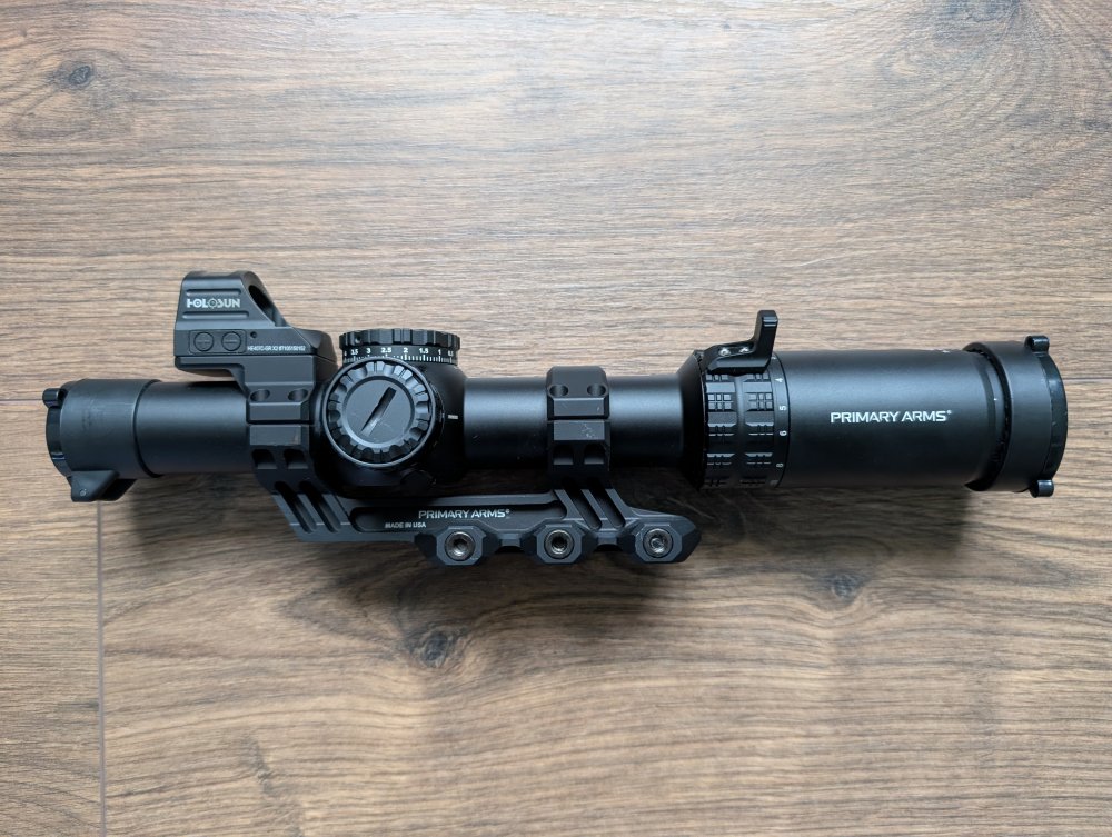 Gemonteerd in een Primary Arms PLx cantilever mount.