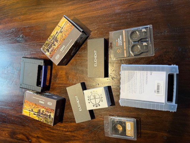 Ivm overgang naar ZERO Compromise met 36 mm buis, en dus 36 mm montage, zijn mijn 30 en 34 mm en 40 mm kijkermontages overbodig geworden. Alle montages onbeschadigd en van top-kwaliteit. prijzen vermeld ik acht het betreffende item en tussen haakjes de nieuwprijs.