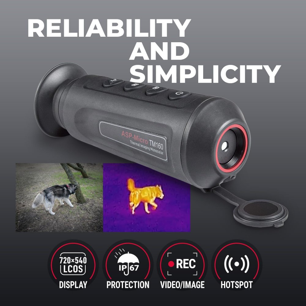 De ASP-Micro TM160 is hét perfecte instapmodel warmtebeeldcamera. Met een 160x120 resolutie, full-color display, digitale zoom tot 4x en een gebruiksduur tot wel 10 uur (7 uur met WiFi) biedt de thermische camera alles dat u nodig hebt. Dit maakt de ASP-Micro een ideaal detectiemiddel voor talloze toepassingen. Vanwege het lichte gewicht en compacte formaat is het een thermische camera van broekzak-formaat.