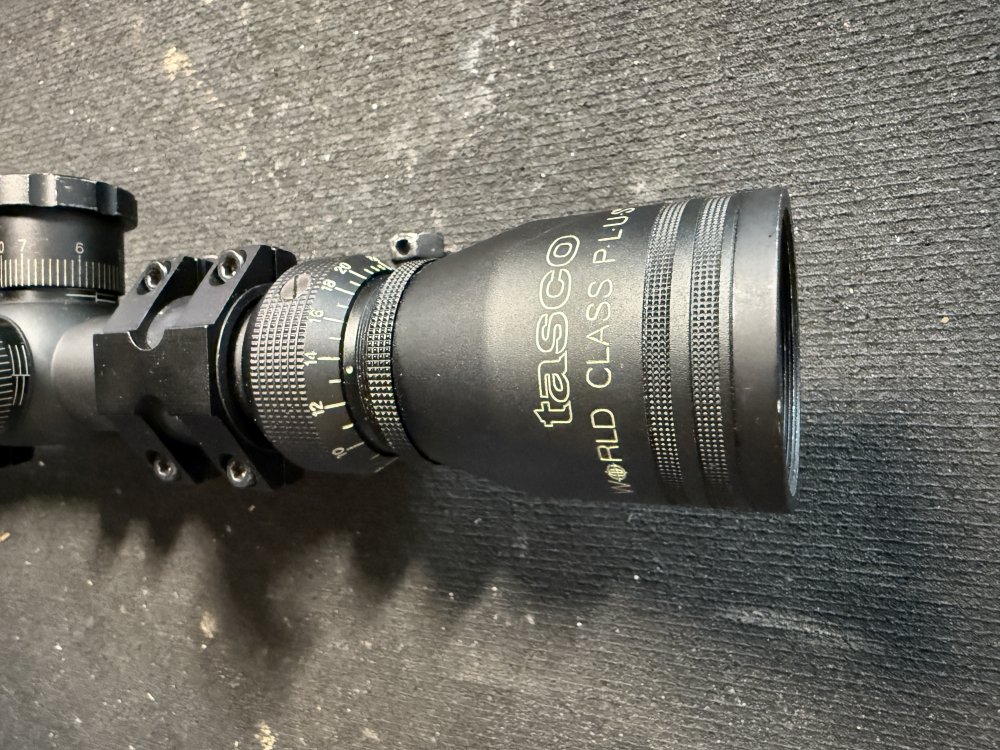 Te koop: nette Tasco World Class Plus richtkijker met een variabele vergroting van 8-32× en een 50 mm objectieflens.