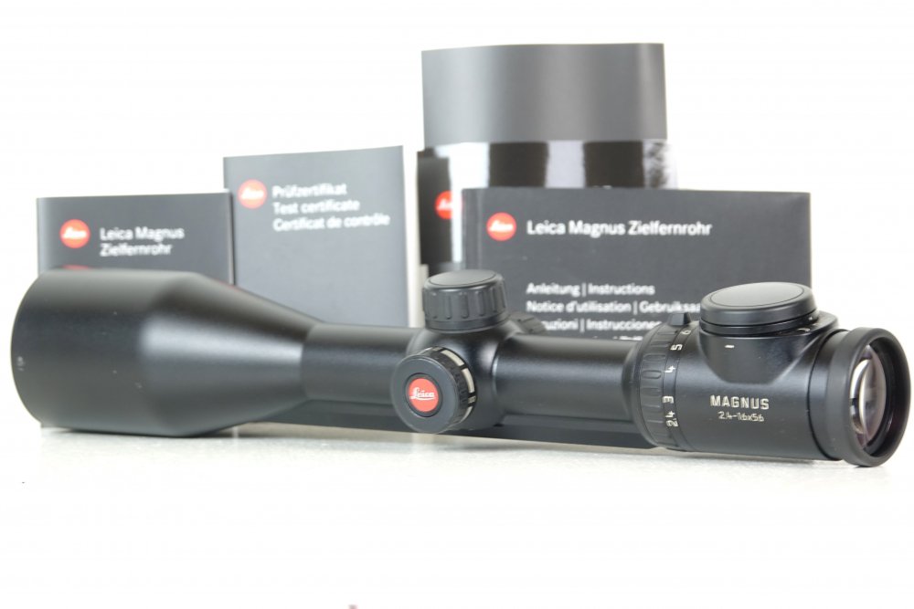 Leica Magnus 2.4-16x56 met Zeiss schiene. Dit is het absolute topserie van Leica. De Magnus komt uit Duitse productie, niet uit de portugese fabriek. Nieuwprijs is 3200 euro.