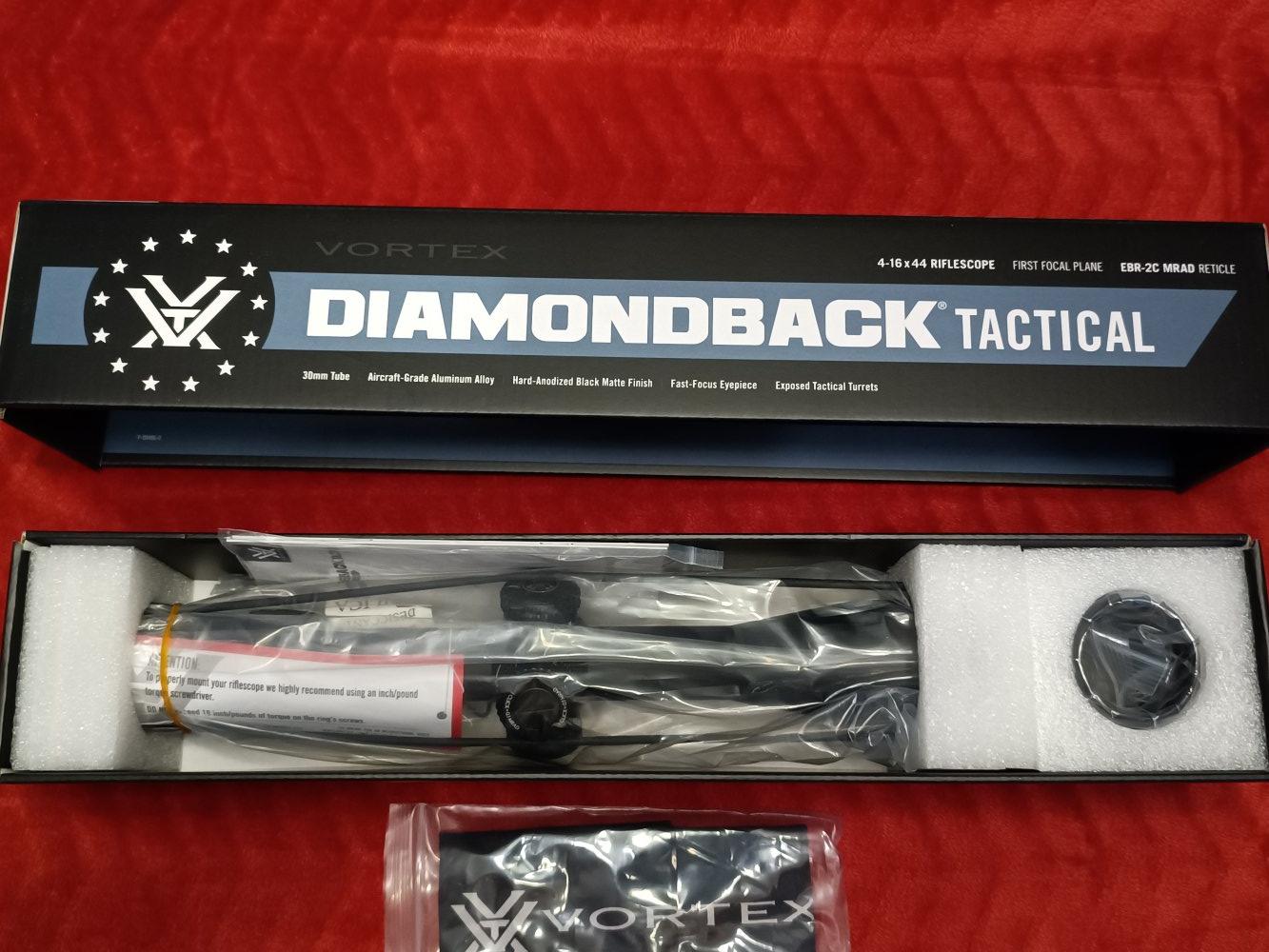 Nieuwe Vortex Diamondback tactical 4-16x44 FFP EBR-2C nog nooit gebruikt zit nog in verpakking alleen uitgehaald voor foto's te nemen.