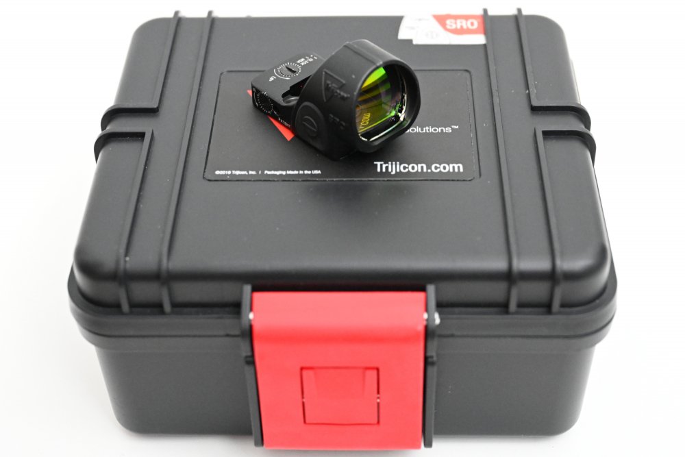 Te koop een originele Trijicon SRO red dot sight met 1 MOA richtpunt. In zeer goede staat. Inclusief originele koffertje en accessoires. Vraagprijs 700 euro of een goed bod.
