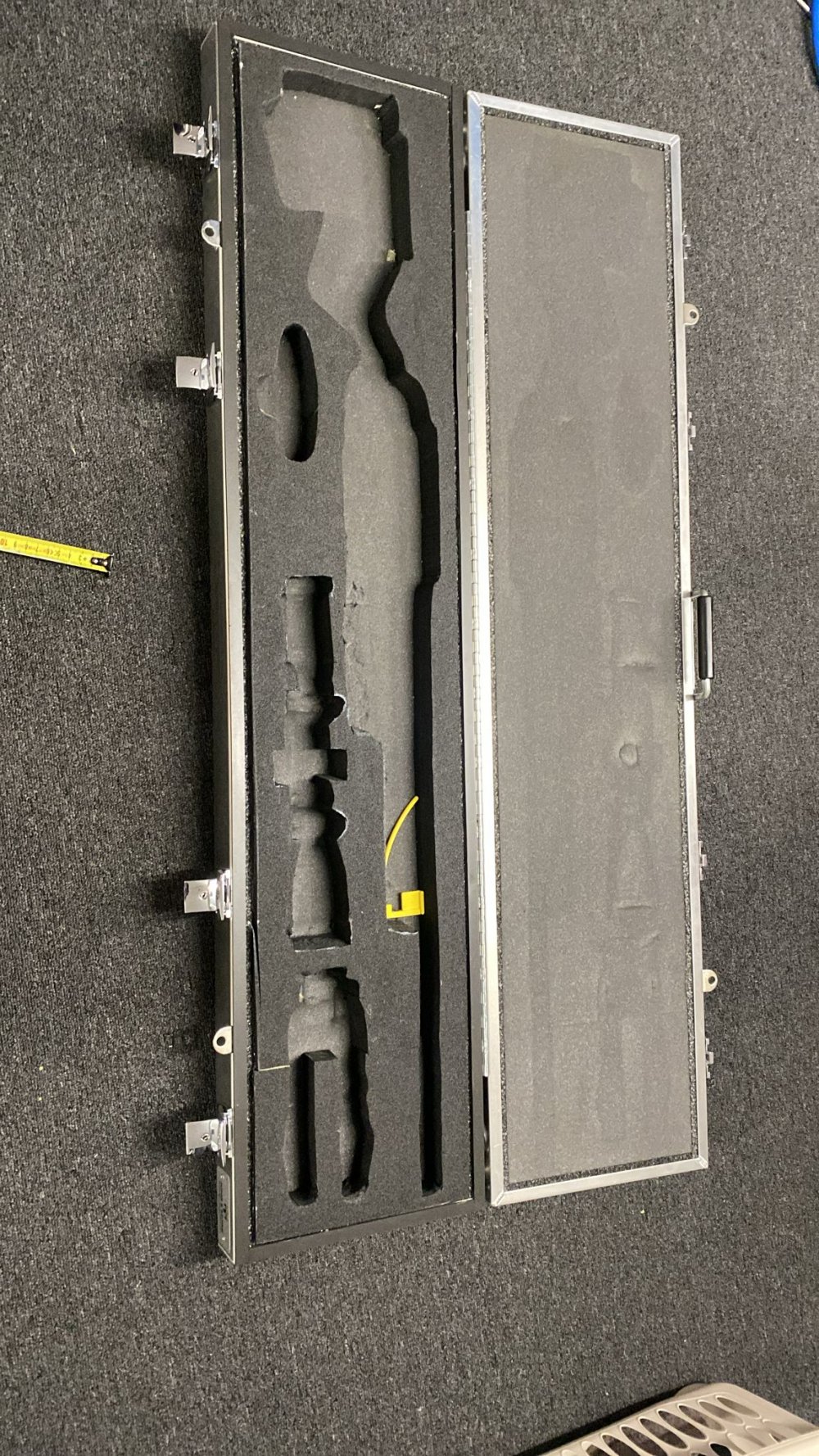 Aluminium geweer koffer van het merk King & More. De koffer is in goede staat en heeft een schuim interieur op maat gemaakt voor een geweer. Ideaal voor het veilig vervoeren en opbergen van uw geweer.
