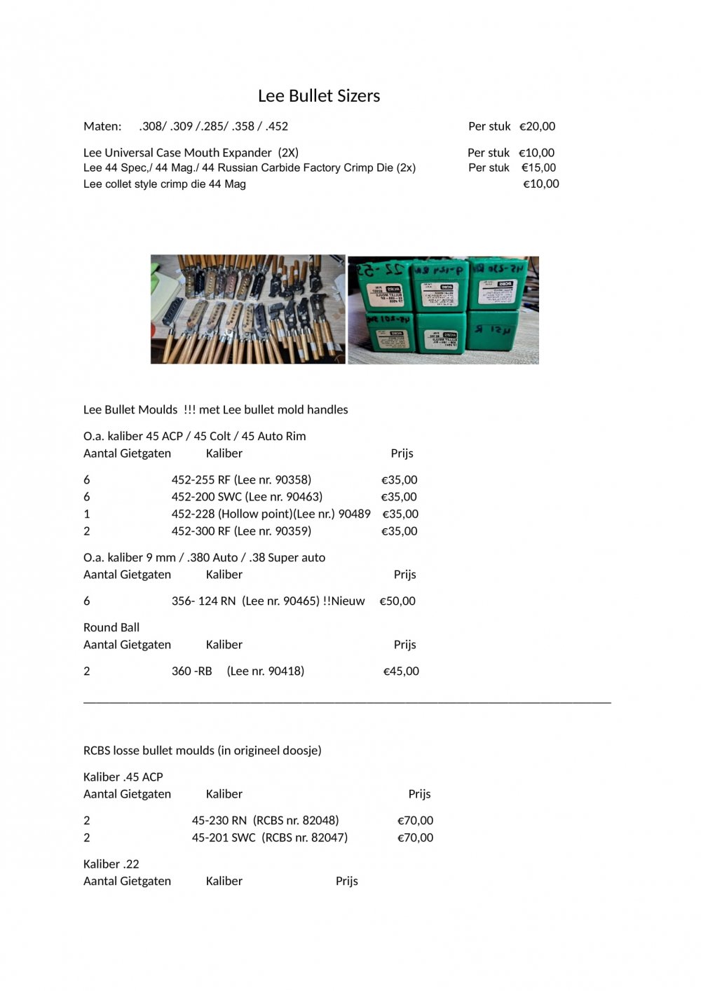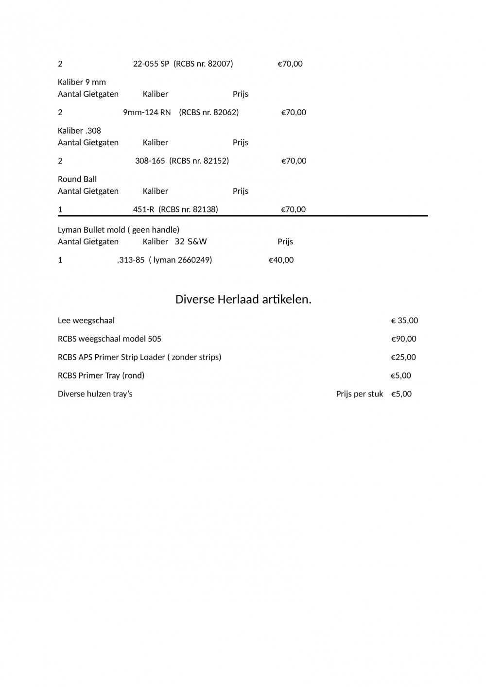 Lijst geüpdatet 23-12...... Hierbij diverse herlaad gerelateerde artikelen. Betreft een partij uit een nalatenschap. Ophalen heeft de voorkeur. Prijzen zjjn ongeveer (iets minder dan) de nieuwprijzen. Het betreft nieuwprijzen vergeleken op een paar betrouwbare site's van wapenhandelaren in Nederland. Het liefst ophalen geniet de voorkeur, de gehele partij is zorgvuldig nagekeken maar een foutje is uiteraard snel gemaakt. Mocht er onverhoopt iets worden verstuurd wat niet compleet is zoals aangeboden dan wordt hier een correcte oplossing op toegepast.