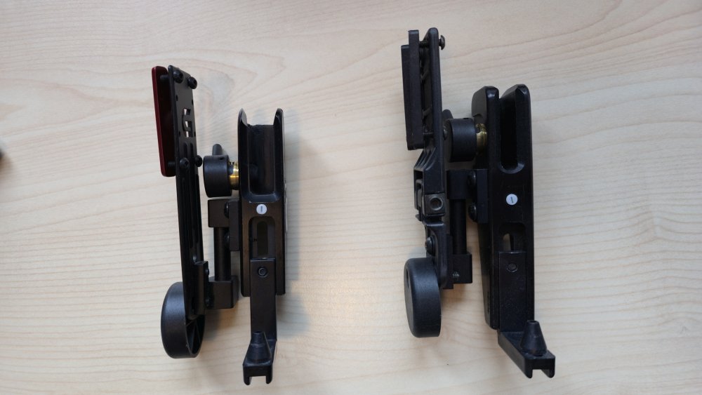 Beide holsters amper gebruikssporen; hoogstens waar de triggerguard rust maar dat is "onzichtbaar" als het wapen geholsterd is. Per stuk ooit nieuw gekocht, direct bij Ghost International Italy dus de aanschafprijs is bekend.