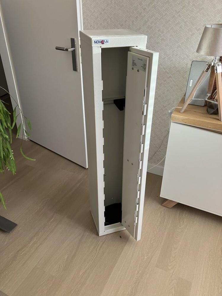 Mijn wapenkluis voor 3 geweren is te koop. De kluis is 125cm hoog en 25 cm diep en breed.