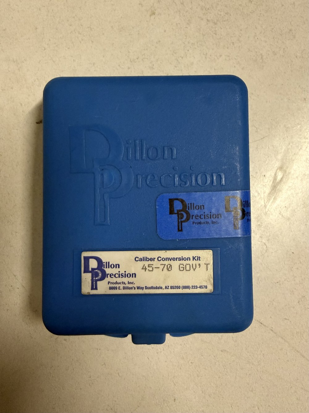 Twee Dillon conversion kits voor kaliber 44-40 WIN en 45-70 GOVT. Alleen shellplates en locator buttons.