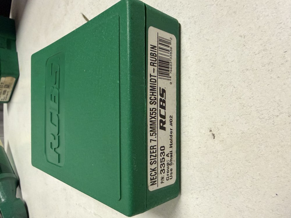Gebruikte RCBS 7,5 x 55 Swiss Neck Sizer. Set heeft gebruikerssporen maar werkt naar behoren. Zie foto’s.