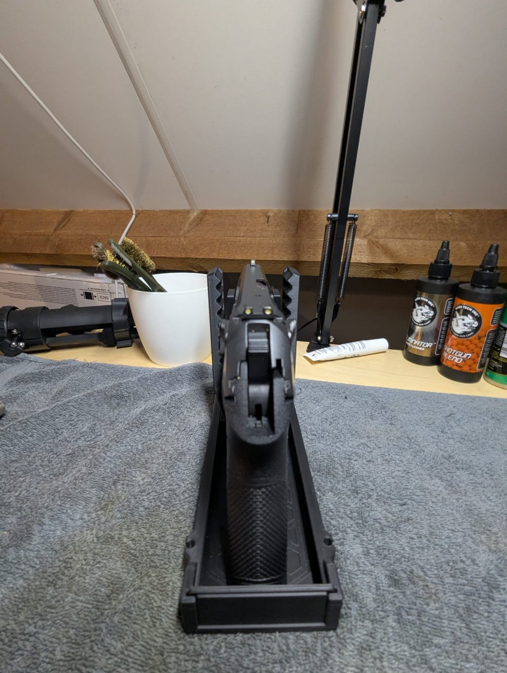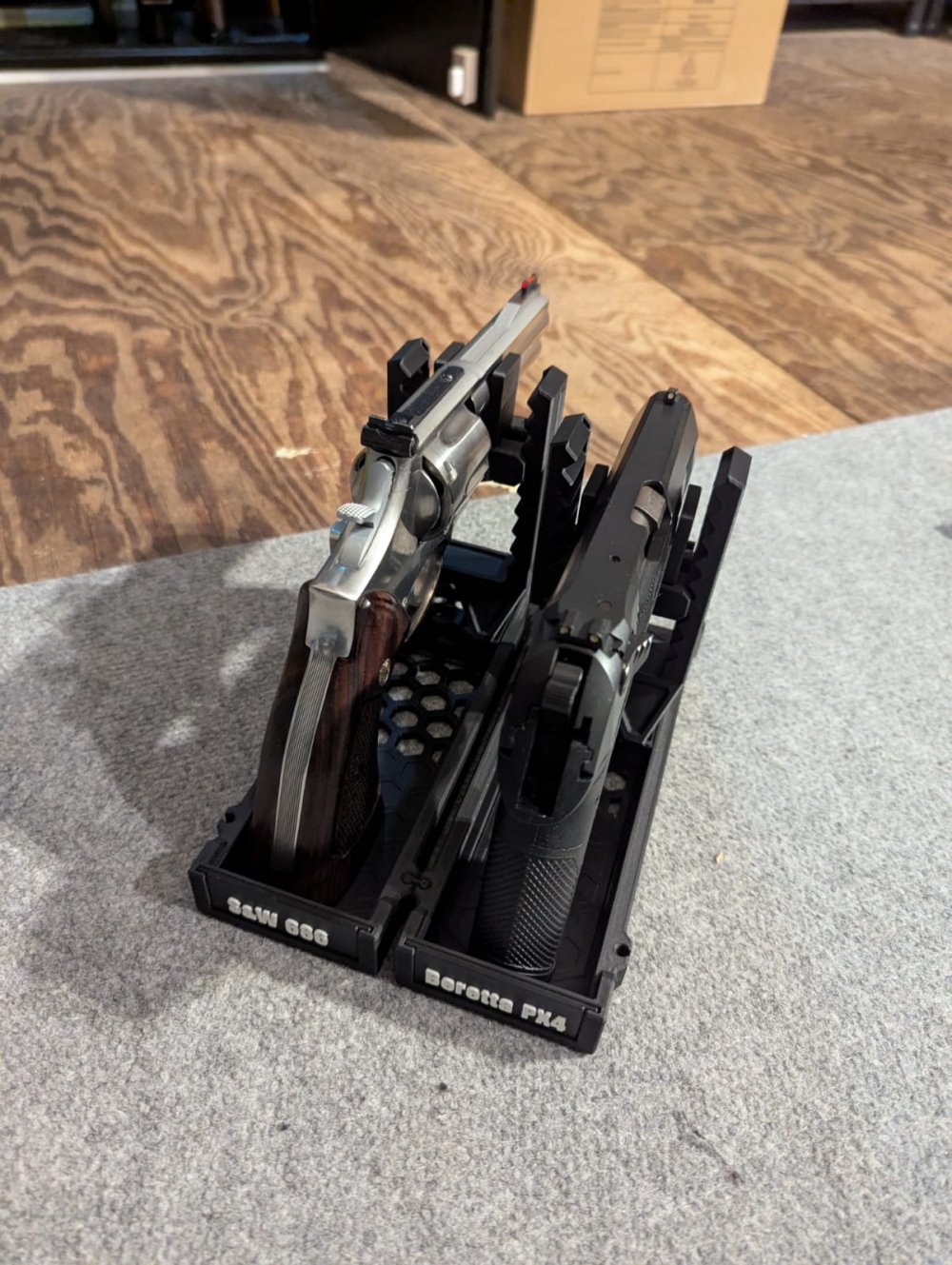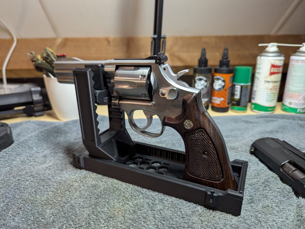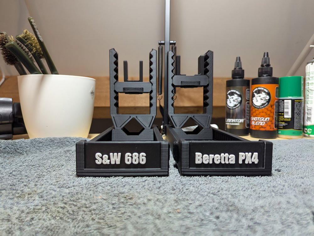 Ik lever volledig modulaire, 3D-geprinte standaarden voor handvuurwapens — geschikt voor zowel pistolen als revolvers. Het systeem is ontworpen voor maximale flexibiliteit: lengte, hoogte en breedte zijn fijn verstelbaar, zodat vrijwel elk type vuurwapen inclusief eventuele attachments veilig en stabiel geplaatst kan worden.