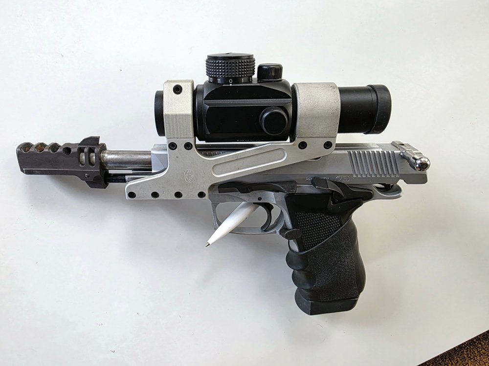 Met Red dot richtmiddel, volledig uitgericht met laser.