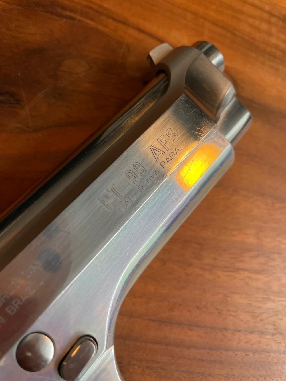 De PT-99 AFS is geïnspireerd op het ontwerp van de Beretta 92 en beschikt over een volledig roestvrijstalen frame en slede voor verbeterde corrosiebestendigheid en duurzaamheid. Dit pistool is uitgerust met een verstelbaar vizier aan de achterzijde en een ambi veiligheid/ontspanningshendel, waardoor het een uitstekende keuze is voor zowel rechts- als linkshandige schutters.