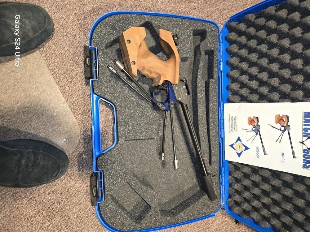 Te Koop wegens veranderde lichaam gesteldheid een Vrij pistool .22 Model MG5 met mechanische trekker van Match Guns