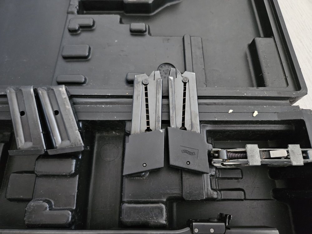 Complete set met 2x .22 en 2x .32 magazijnen, kogelvanger, extra trekkergroep en originele accessoires.