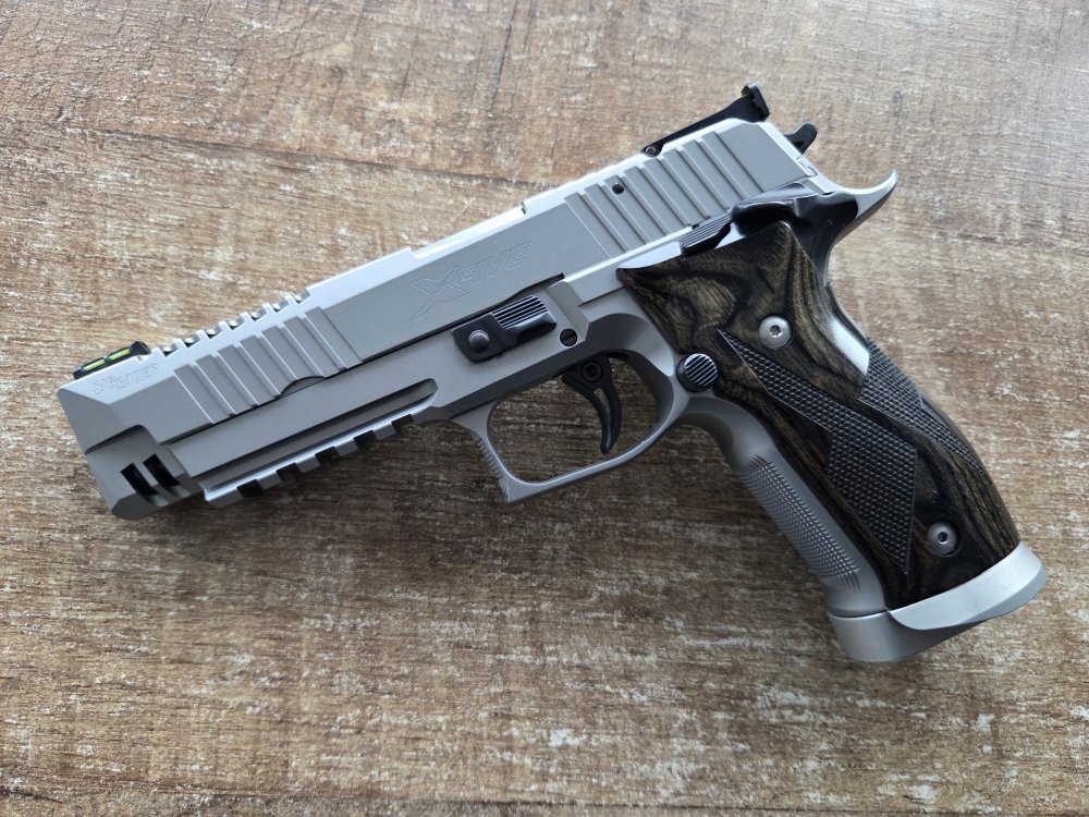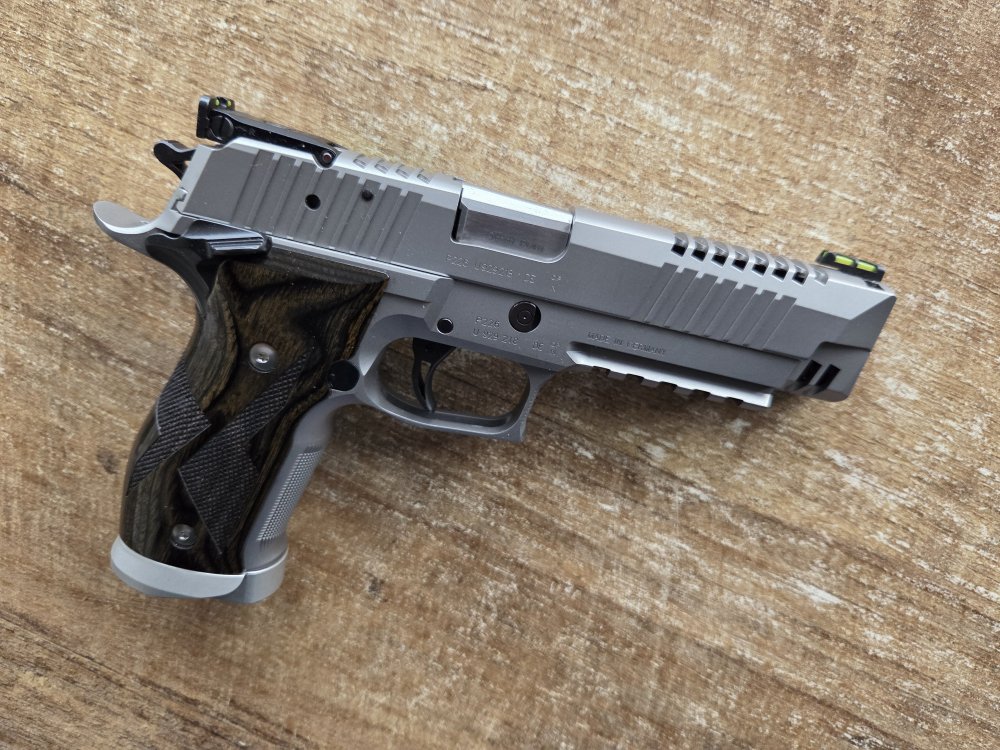 Zeldzame sig sauer x-five skeleton 9mm. Geproduceerd in de mastershop fabriek in Eckenforde Duitslands. Er was er ook 1 te koop bij drummen voor 4750 en die was binnen no time verkocht.