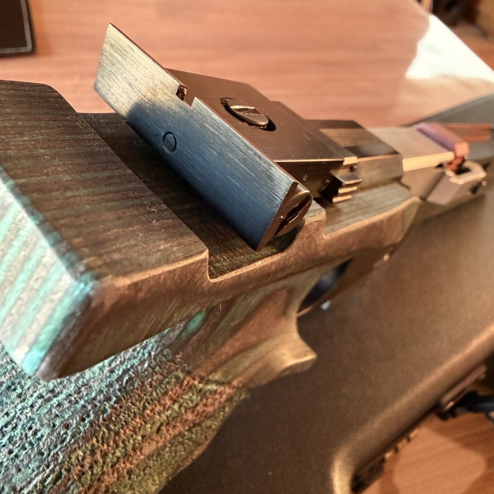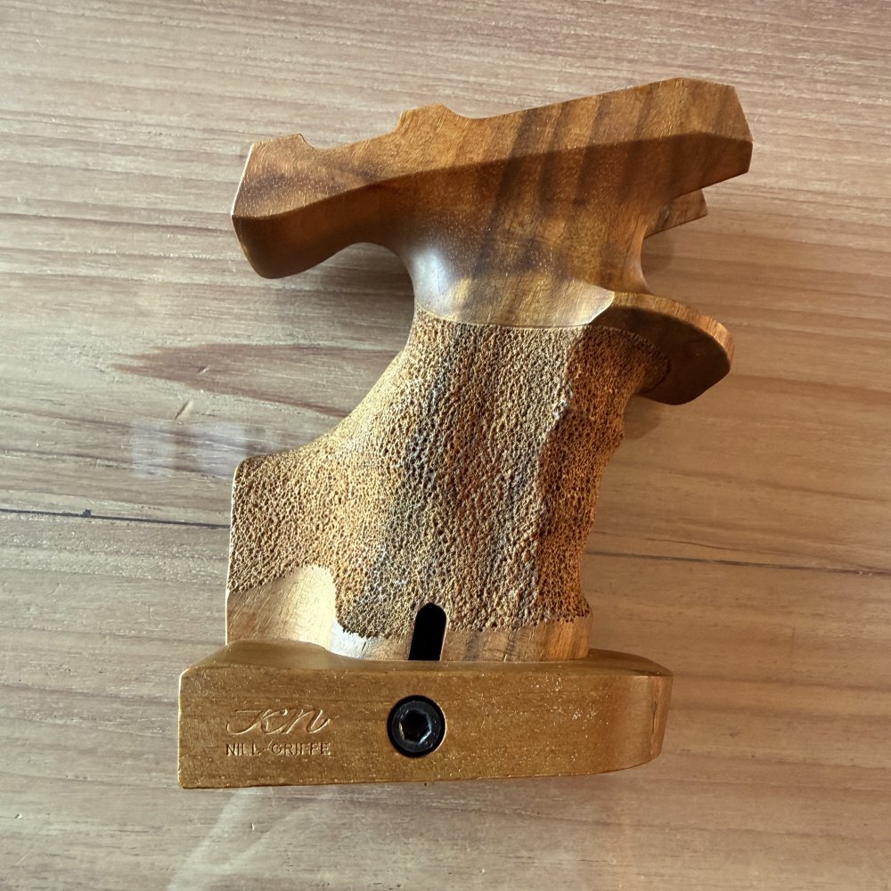 Current on the pistol is a Rink Medium Blue/Black grip, with extra swell. I will also include the original large walnut grip and grip spacer.