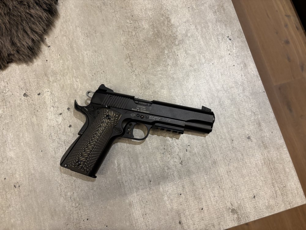 Zo goed als nieuwe 1911 van gsg .22 met fake supressor fijn schietend wapen deze mag verzameling verlaten wegen aankoop acp 45 .